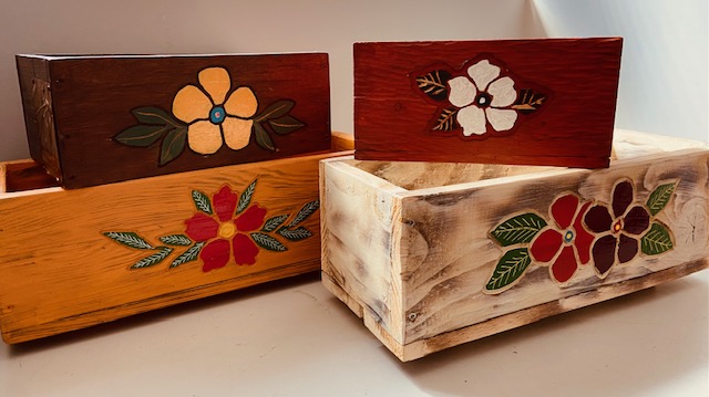 Double planter stand with two small window boxes